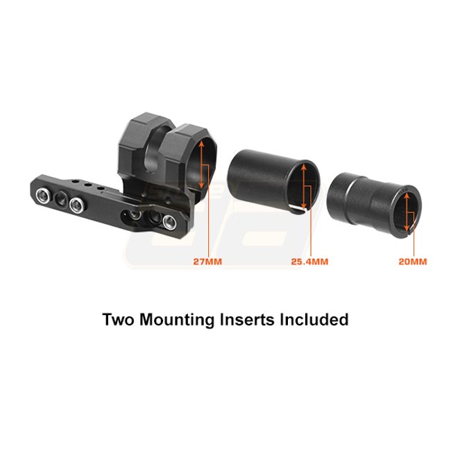 • Le support décalé amovible offre un décalage vers l'avant ou vers l'arrière de 46,5 mm en plus du décalage vertical ou vers le bas de 28,5 mm de l'anneau de lampe de poche