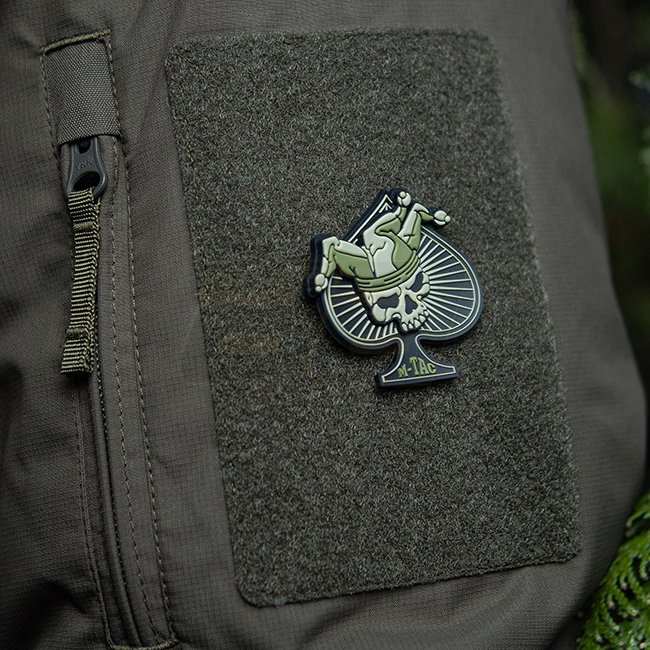Écusson en caoutchouc M-Tac As de Pique en Olive, 50x60mm, Devant en caoutchouc, Dos à crochet