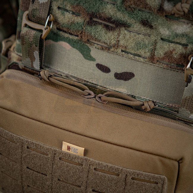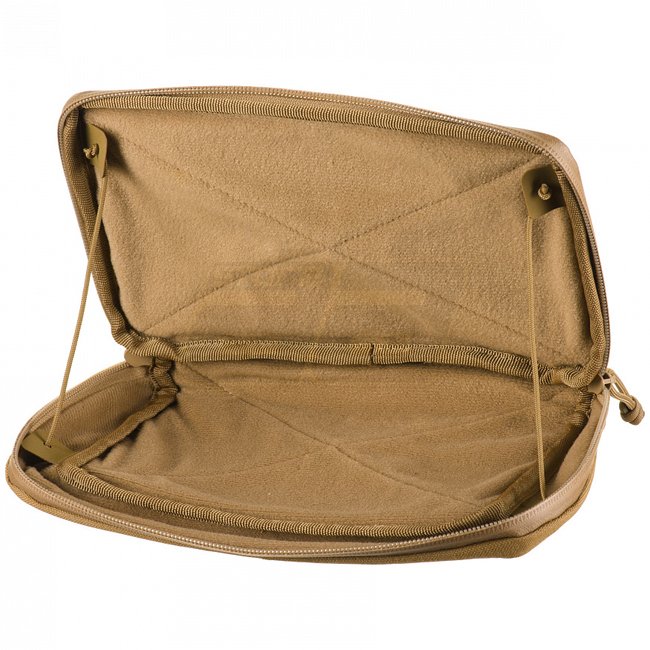 La pochette a un grand compartiment. Les parois intérieures de la pochette sont doublées de velours, ce qui permet de fixer des inserts modulables ou d'y placer une tablette. Un panneau velcro est cousu à l'avant, destiné à la fixation d'équipements et de patchs. Au bas de la pochette, les designers ont ajouté un élastique pour une lumière chimique. L'Admin Large Elite se fixe à votre équipement via l'interface MOLLE.