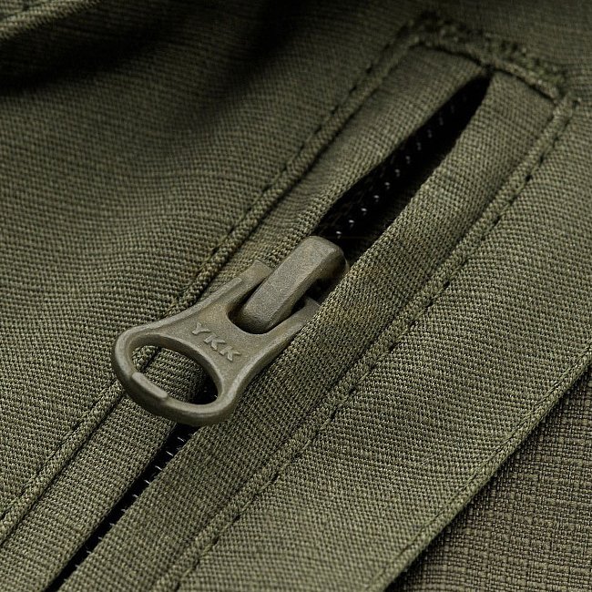 Les shorts sont faits d'un matériau lisse et léger avec une imprégnation en téflon qui protège contre l'eau et la saleté. Le mélange de polyester et de coton est agréable sur la peau, conserve bien la couleur et est très résistant. L'idée principale lors de la création de ces shorts était de maintenir le confort de mouvement - les concepteurs se sont acquittés de cette tâche à 100 % - les shorts donne une impression de légèreté, ne limite pas les mouvements et a l'air élégant et solide. Le modèle a des poches confortables et larges avec des inserts renforcés. Le pantalon est conçu pour être porté avec une ceinture jusqu'à 5,5 cm de large. Des accessoires YKK de haute qualité ont été utilisés.