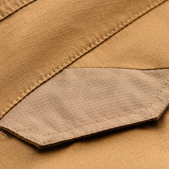 Les shorts sont faits d'un matériau lisse et léger avec une imprégnation en téflon qui protège contre l'eau et la saleté. Le mélange de polyester et de coton est agréable sur la peau, conserve bien la couleur et est très résistant. L'idée principale lors de la création de ces shorts était de maintenir le confort de mouvement - les concepteurs se sont acquittés de cette tâche à 100 % - les shorts donne une impression de légèreté, ne limite pas les mouvements et a l'air élégant et solide. Le modèle a des poches confortables et larges avec des inserts renforcés. Le pantalon est conçu pour être porté avec une ceinture jusqu'à 5,5 cm de large. Des accessoires YKK de haute qualité ont été utilisés.