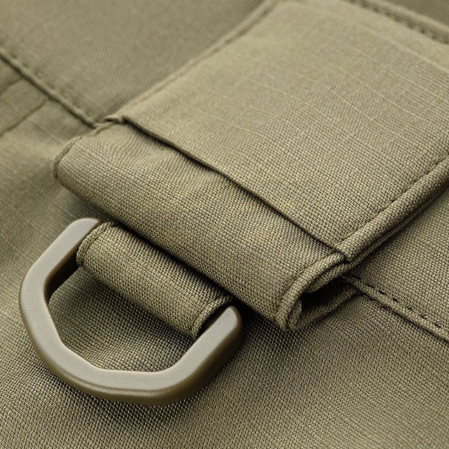 Les shorts sont faits d'un matériau lisse et léger avec une imprégnation en téflon qui protège contre l'eau et la saleté. Le mélange de polyester et de coton est agréable sur la peau, conserve bien la couleur et est très résistant. L'idée principale lors de la création de ces shorts était de maintenir le confort de mouvement - les concepteurs se sont acquittés de cette tâche à 100 % - les shorts donne une impression de légèreté, ne limite pas les mouvements et a l'air élégant et solide. Le modèle a des poches confortables et larges avec des inserts renforcés. Le pantalon est conçu pour être porté avec une ceinture jusqu'à 5,5 cm de large. Des accessoires YKK de haute qualité ont été utilisés.