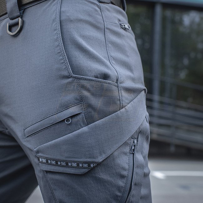 Pantalons Flex Aggressor d'été M-Tac en bleu marine foncé, taille 30/32. Léger, durable et respirant pour les activités de saison chaude. Dispose de larges poches, d'un ajustement réglable et compatible avec des ceintures allant jusqu'à 5,5 cm de large. I
