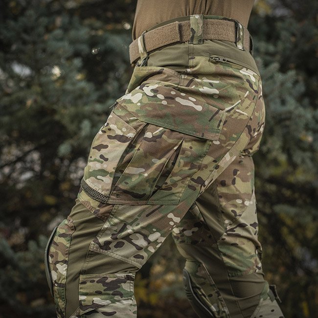 La poche cargo à rabat asymétrique est équipée d'une poche plaquée supplémentaire, qui peut contenir un chargeur M4 ou AK. La poche cargo elle-même est assez spacieuse. Il a deux plis, grâce auxquels sa taille peut être augmentée pour transporter des objets volumineux. De plus, la poche cargo est équipée d'une seconde entrée zippée, qui permet d'accéder à son contenu en position assise. Le bas des poches cargo a une maille pour une ventilation supplémentaire.