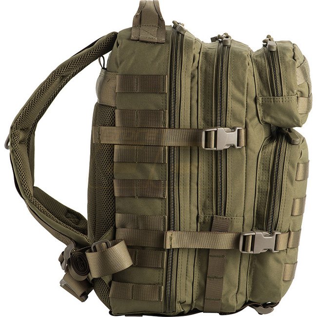Vous pouvez utiliser le pack Assault comme sac à dos de ville ou pour de courtes randonnées. Équipé d'un système de fixation MOLLE, il dispose de deux grands compartiments principaux à fermeture éclair. Il y a deux poches zippées supplémentaires sur le devant et des sangles pour transporter le sac à dos avec un rembourrage doux.