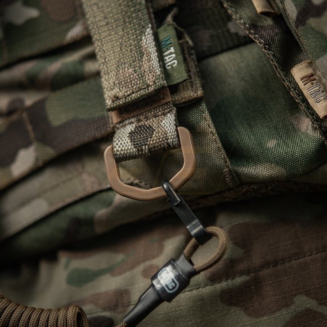 L'attache M-Tac D-Ring est conçue pour attacher des objets supplémentaires à un sac à dos, un porte-plaque, un gilet pare-balles, une ceinture ou tout autre équipement doté d'une interface MOLLE.