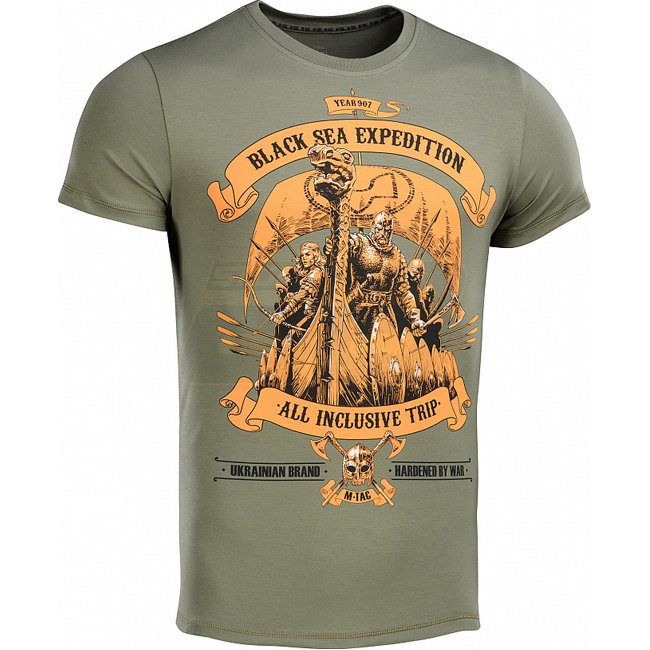 T-shirt M-Tac Black Sea Expedition en olive XL, fabriqué à partir de 93% de coton et 7% d'élasthanne.