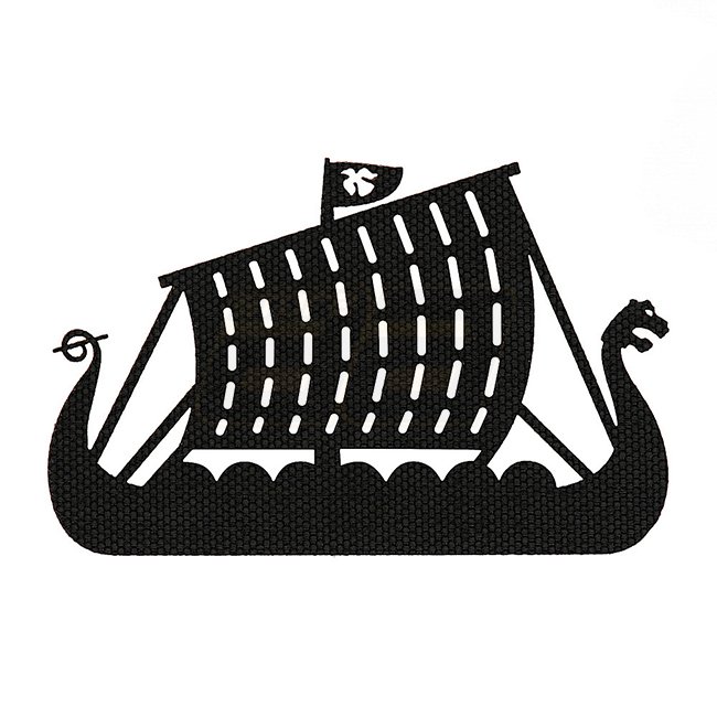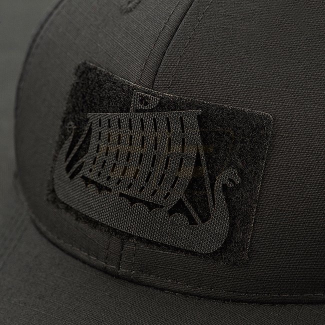 M-Tac Drakkar Patch Découpe Laser - Noir. Devant : Nylon Cordura 500D. Arrière : Surface à crochet. Dimensions : 70 x 45 mm.