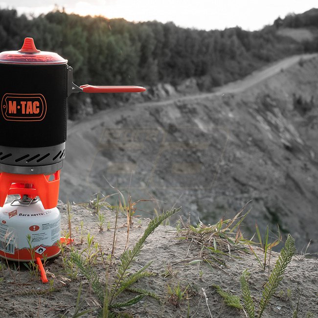 Burner et Chaudière M-Tac - Réservoir de cuisson compact avec une distribution de chaleur efficace, accessoires pliants, régulateur de gaz et allumage piézoélectrique. Idéal pour cuisiner en plein air avec un temps de chauffage rapide.
