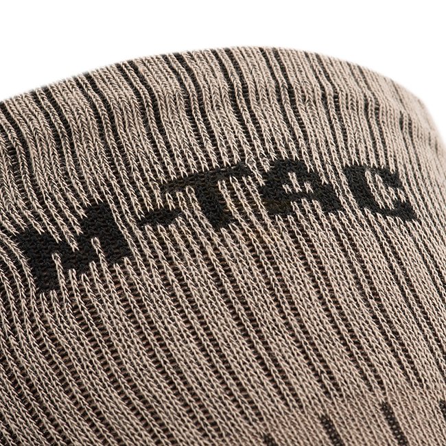 Les caractéristiques de conception des chaussettes hautes Mk.2 comprennent des zones spéciales d'absorption thermique et des chocs à l'avant-pied et au talon avec une transition vers le cou-de-pied, protégeant la cheville des entorses et des contraintes mécaniques. Pour améliorer les performances lors de marches intenses, un collier de voûte plantaire latéral a été ajouté pour éviter que la chaussette ne se plisse en bas. Le large revers répartit uniformément la charge pour maintenir la chaussette sur votre tibia. Toute la surface du pied est doublée d'un tissage éponge interne qui répartit uniformément la charge sur l'ensemble du pied. Les chaussettes de trekking avec des zones thermiques texturées absorbent la majeure partie de l'humidité et à travers les canaux de ventilation existants, les capillaires éliminent l'humidité à travers la tige de la chaussure. De plus, elles se combinent parfaitement avec les bottes à membrane, car le processus de transport de l'humidité vers l'extérieur est encore plus rapide.