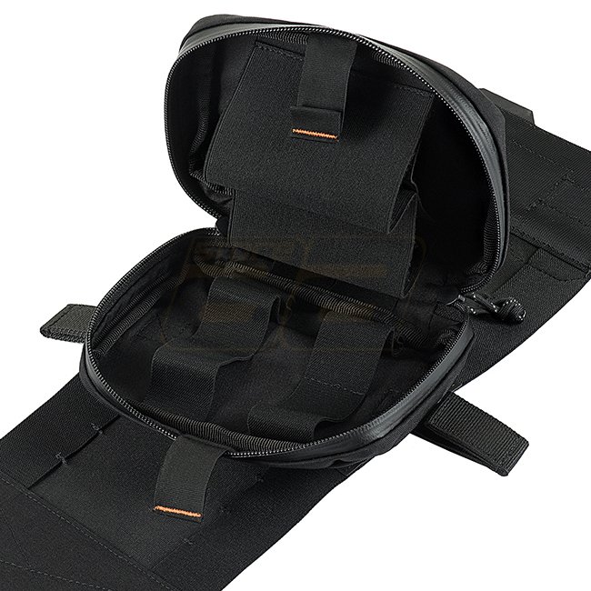 L'organisateur est fabriqué en Cordura 500D avec un support en polyuréthane utilisant une fermeture éclair étanche YKK AquaGuard pour garder le contenu au sec. il peut être rapidement retiré de la base de chaque côté. Il y a un signe de transfert thermique sur le devant de la trousse de premiers soins pour indiquer sa position optimale.