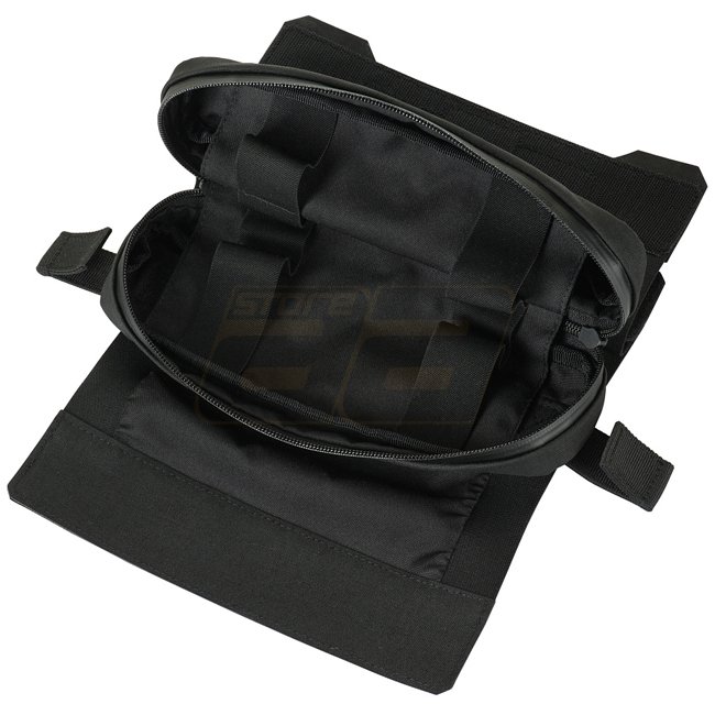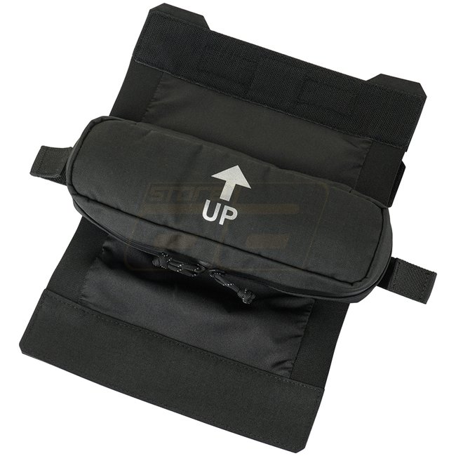 La pochette médicale s'installe dans la poche de la partie arrière du porte-plaque. Une couche de Velcro amovible supplémentaire sur le rabat de la pochette aidera à l'intégrer dans n'importe quel porte-plaque où la partie inférieure de la poche arrière se ferme avec du Velcro, peu importe si la partie crochet ou boucle est nécessaire.