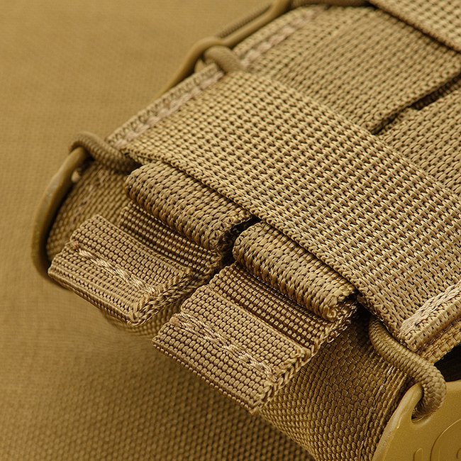 Pochette pour chargeur M-Tac Kolchan AK/AR Mini - Coyote. Inserts en plastique résistant aux impacts. Système MOLLE pour équipement supplémentaire. Compatible avec les chargeurs AK47, AKM, AK74 et AR.