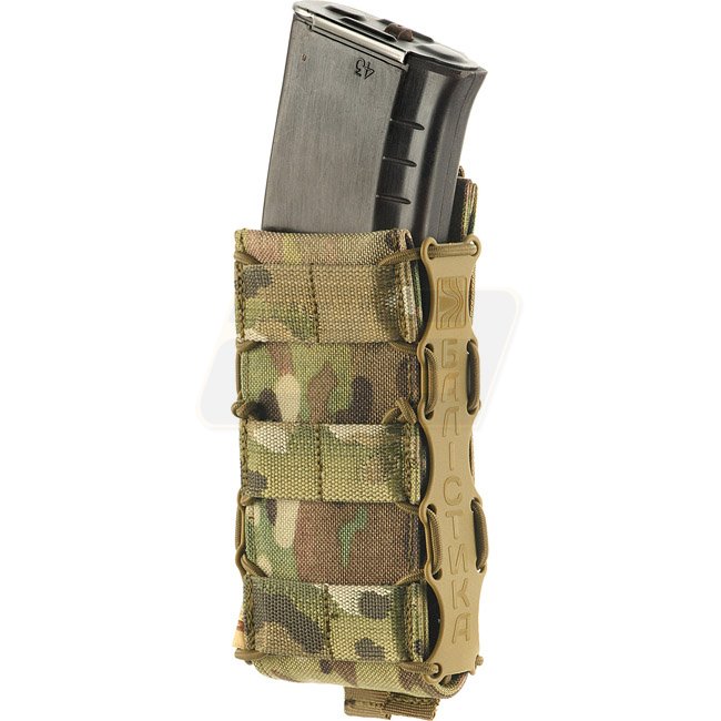 La pochette mag "Kolchan" a été créée en collaboration avec Balistyka. Les parois latérales sont des inserts en plastique résistant aux chocs. Le système MOLLE à l'avant vous permet de fixer des équipements supplémentaires. Ce modèle est compatible avec les chargeurs de type AK47, AKM, AK74 et AR.