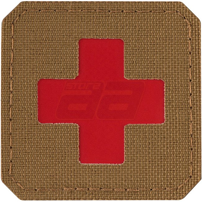 Patch M-Tac Croix de Médecin Découpe Laser - Coyote / Rouge, fabriqué en matériau Cordura 500D sur le devant et doté d'une surface à crochet à l'arrière. Ce patch mesure 45 x 45 mm.