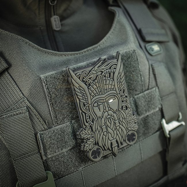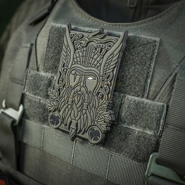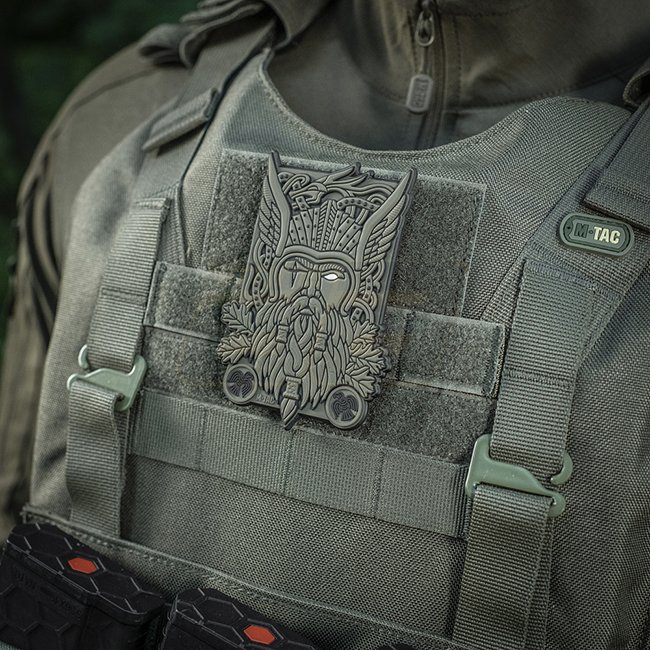 Patch en caoutchouc M-Tac Odin 3D de couleur olive, doté d'une surface à crochet aux dimensions de 75 x 105 mm.