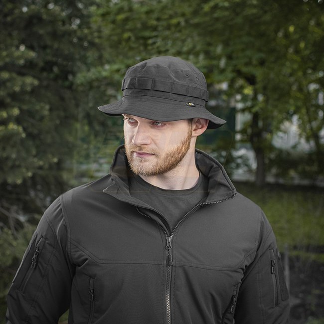 M-Tac Panama Boonie Ripstop - Noir - 59 : Design inspiré des Boonies américains avec un bord semi-rigide, ruban pour fixations camouflées, cordon de menton, œillets de ventilation. Tissu rip-stop durable, coutures cachées pour plus de confort. Matériau :