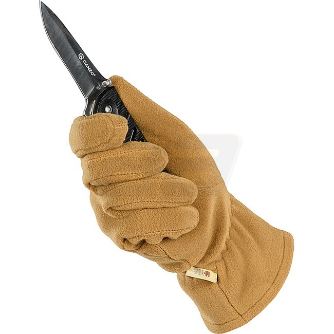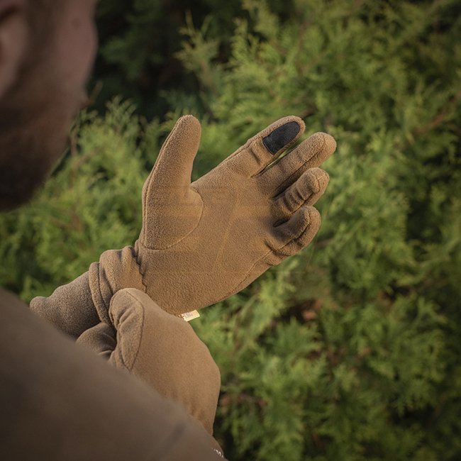 Gants d'hiver M-Tac Polartec en couleur coyote, taille S. Fabriqués en micro polaire Polartec durable pour une chaleur et un confort ultimes. Dotés d'un bandeau élastique au poignet pour un ajustement serré et d'une superposition sur l'index pour la compa