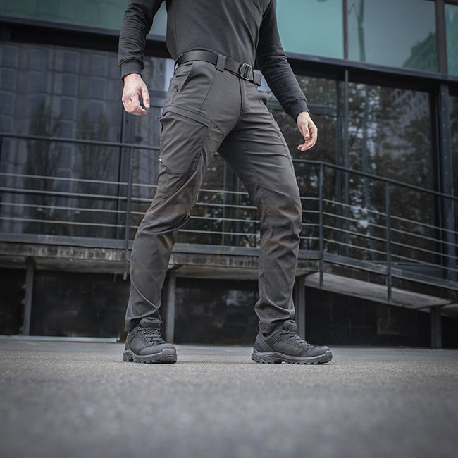Pantalons M-Tac Sahara Flex Light - Noir - 36/30. Parfait pour l'été, les pantalons Sahara Flex Light offrent une circulation d'air optimale, ne surchauffent pas, et permettent un mouvement flexible grâce à la résistance du nylon. Alliant fonctionnalité t