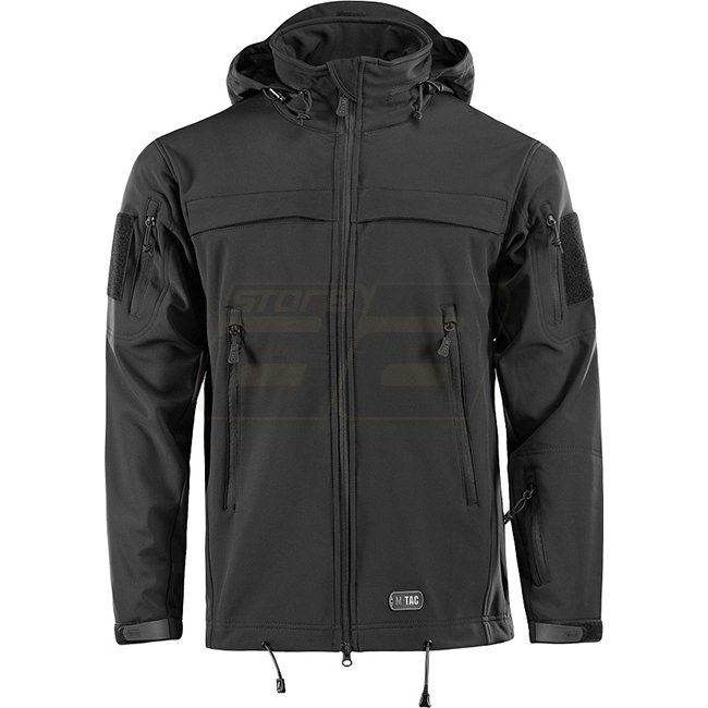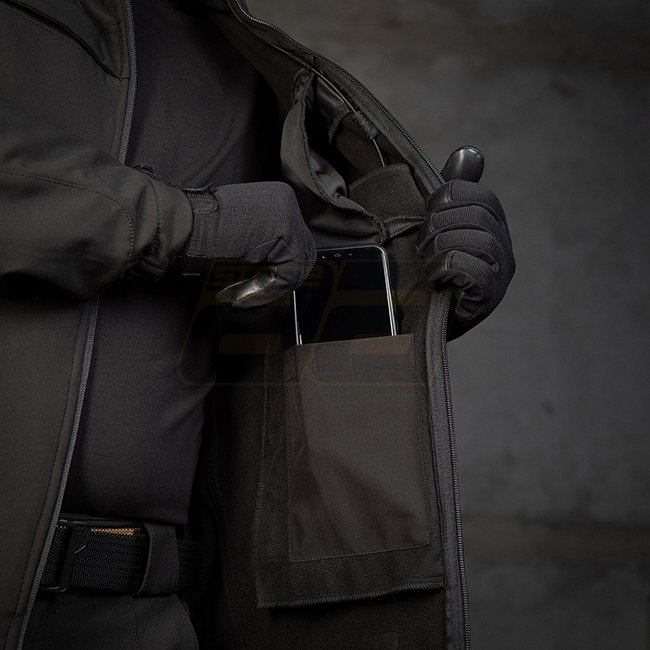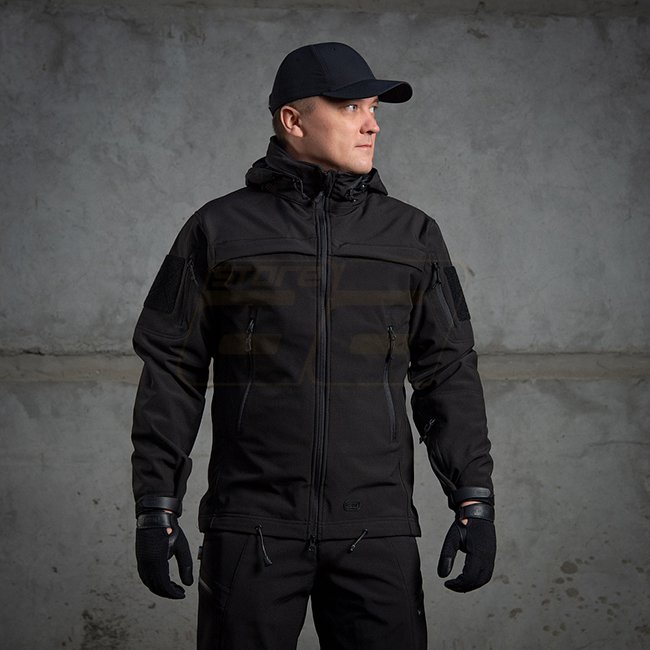 Veste de police Soft Shell M-Tac - Noir - M : Fabriquée en membrane en polyuréthane intercalée pour une protection contre les intempéries, avec une fine couche de polaire. Comprend 2 panneaux d'identification pour la personnalisation et un système d'ouver
