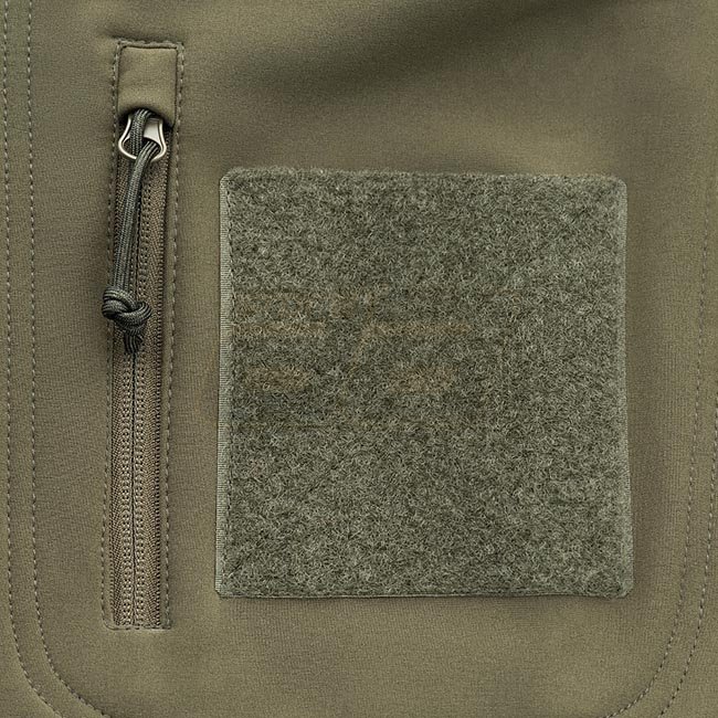 La veste Soft Shell est composée d'une membrane intercalaire en polyuréthane qui protège des intempéries. À l'intérieur, il a une fine couche de polaire. Il dispose de deux panneaux d'identification qui, selon la situation, peuvent être retirés ou rester cachés. Les panneaux vides peuvent être imprimés ou emproided. Un système d'ouverture latérale permet un accès rapide à une arme latéral.