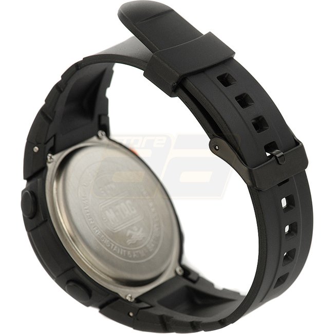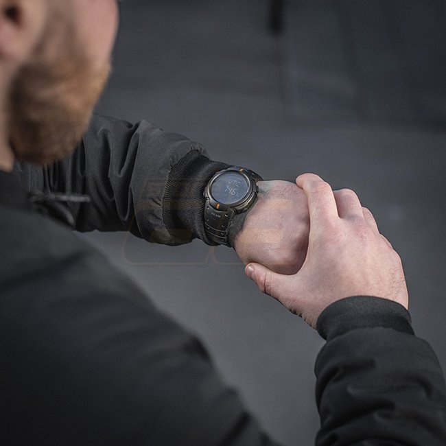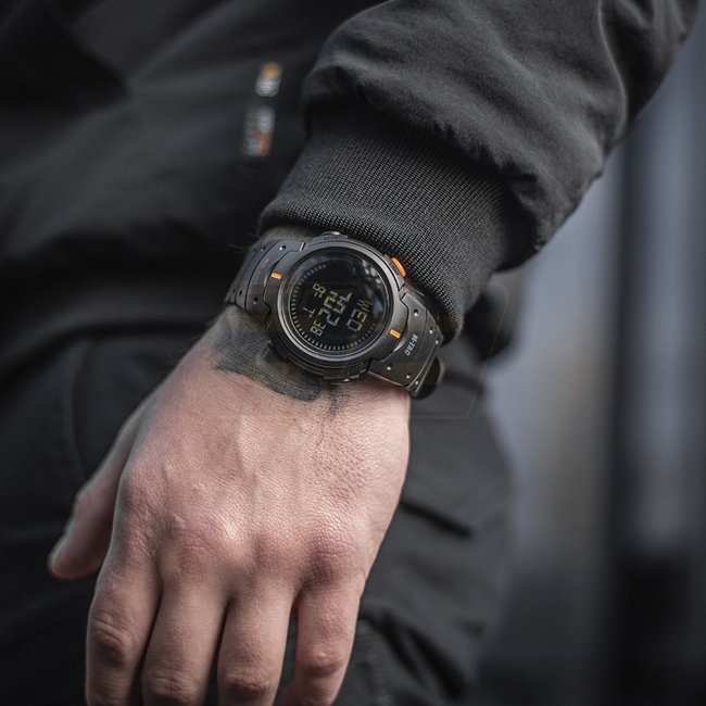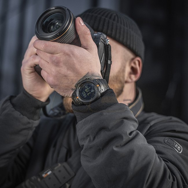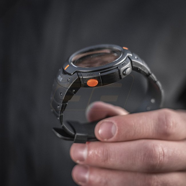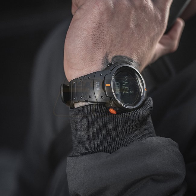 La montre tactique M-Tac avec boussole - Noir est une montre étanche et pratique avec une boussole électronique, idéale pour les activités de plein air comme la randonnée ou les sports extrêmes. Équipée d'un chronomètre et d'un bracelet pratique, elle gar