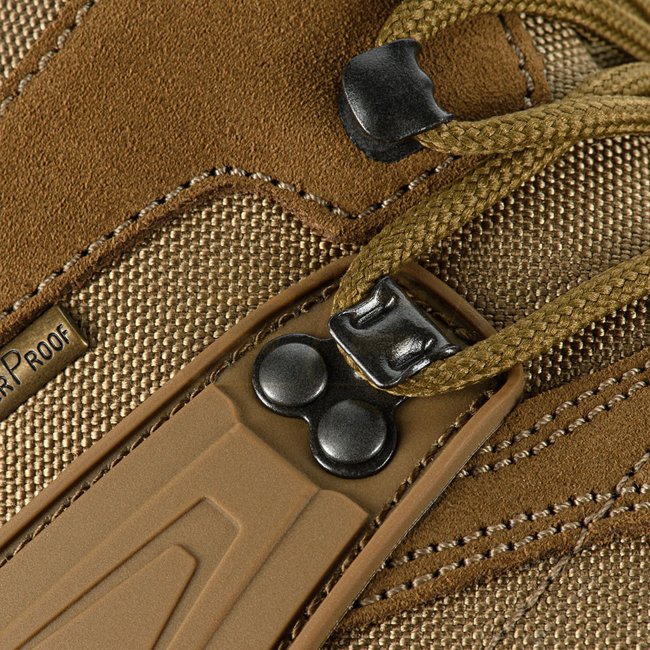 Bottes M-Tac Tactical Demi-Season Pro Line - Coyote - 37 : Baskets demi-saison de haute qualité en daim dense et matériaux Cordura, résistantes à l'humidité et à l'usure. Lacets prolongés pour un ajustement sécurisé, doublure en membrane douce pour le con