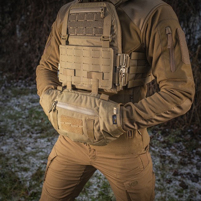 Le Tactical Hand Warmer Elite pour se réchauffer les mains par temps froid. Ce modèle est fabriqué en matériau Cordura 500D de haute qualité et durable avec une doublure polaire Polartec de 149 g/m2 et une isolation G-Loft, qui possède d'excellentes propriétés de réchauffement et protège de manière fiable du froid. L'arrière du manchon est doté d'un filet doux et amortissant. Dans ce modèle, les designers de la marque ont utilisé des accessoires de haute qualité des marques mondiales YKK et Woojin.