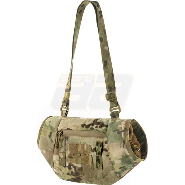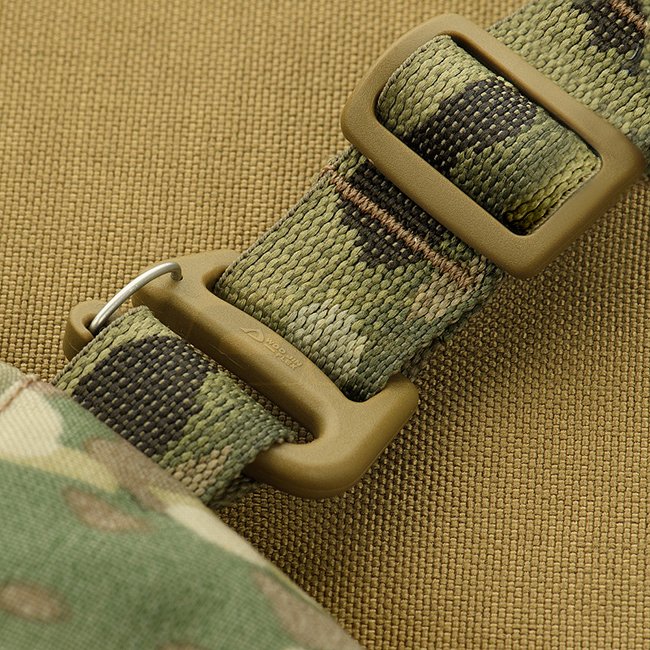 Avec la bandoulière, le manchon peut être porté dans n'importe quelle position ainsi qu'avec une combinaison de vêtements différents. Spécialement destiné aux militaires, ce modèle est équipé d'une bande velcro et conçu pour être fixé sur un panneau velcro sous la face avant d'un porte-plaque. S'il n'y a pas de panneau Velcro sur le gilet, le manchon peut être attaché à un système MOLLE à l'aide de connecteurs en forme de T.