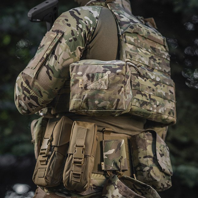Fabriqué en Cordura 500D - tissu super résistant, résistant à l'abrasion et aux charges élevées. Le résumé est attaché à l'équipement à l'aide de l'interface MOLLE, réalisée à l'aide de la technologie Laser Cut. Le panneau velcro avant est conçu pour attacher des identifiants ou vos patchs préférés.