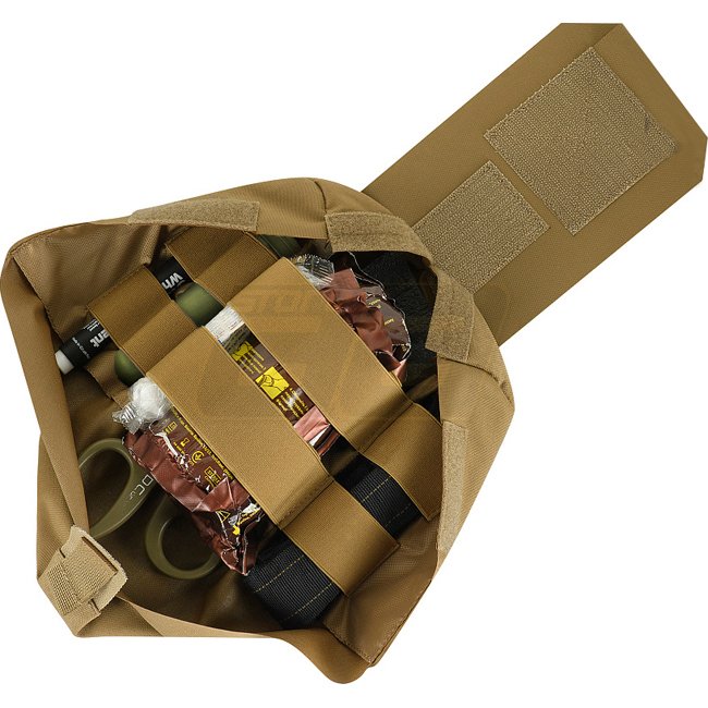 La Grande Poche Médicale Verticale se compose de deux parties : la poche principale, et un organiseur interne de trousse de premiers secours suivant le modèle IFAK (Individual First Aid Kit), avec une méthode d'extraction verticale.