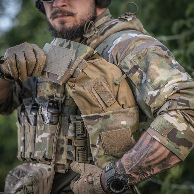 La pochette extérieure est en Cordura 500D - un matériau durable qui résiste à l'abrasion et aux charges élevées. Les parois latérales intérieures sont en nylon élastique, grâce auquel il conserve sa forme. Un élément de fixation supplémentaire est une sangle qui vous permet de maintenir en toute sécurité la trousse de premiers secours, même pendant l'activité. Se fixe à l'équipement à l'aide de l'interface MOLLE.