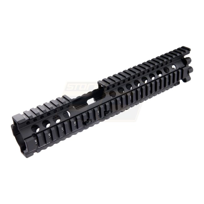 MadBull Daniel Defense AR15 Lite Rail 12 Pouces FSP - Noir. Licencié par Daniel Defense. Aluminium usiné CNC, Ouverture de visée avant. Convient pour séries M4/M16.