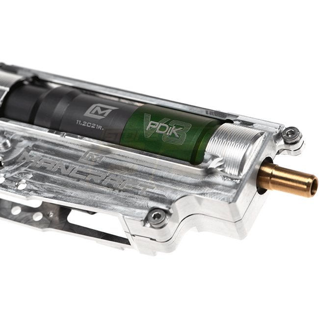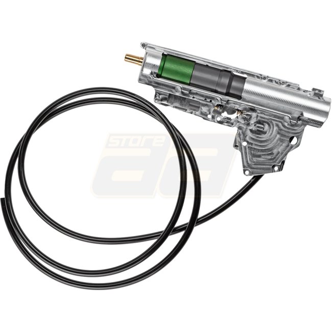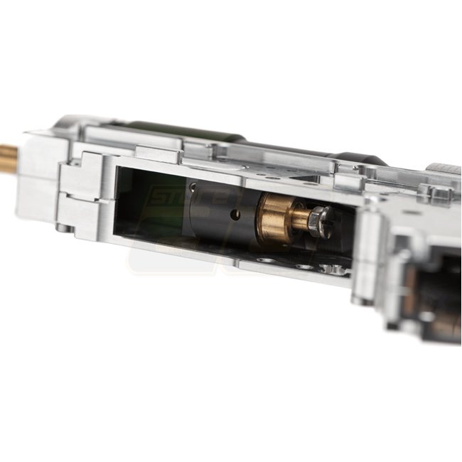 La conversion est dotée d'une buse mobile indépendante, tout comme sur les fusils AEG. La position de la buse n'est pas directement liée à la position de l'élément d'alimentation en gaz. Cette solution garantit que la buse est stationnaire dans la chambre hop-up lors du tir de la conversion. Cela vous offre la meilleure stabilité, étanchéité et précision de tir.