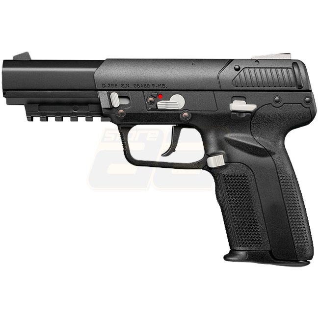 Pistolet airsoft GBB Marui Five-Seven haute performance - construction en plastique ABS, capacité du chargeur de 25 billes, longueur de 208 mm, poids de 740 g, canon interne de 100 mm, vitesse de 280-300 FPS, mode Semi-Auto, Hop Up réglable. Le paquet com