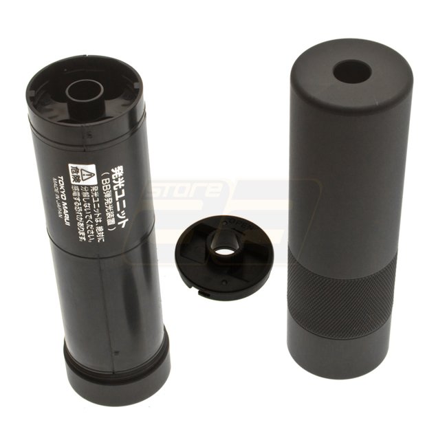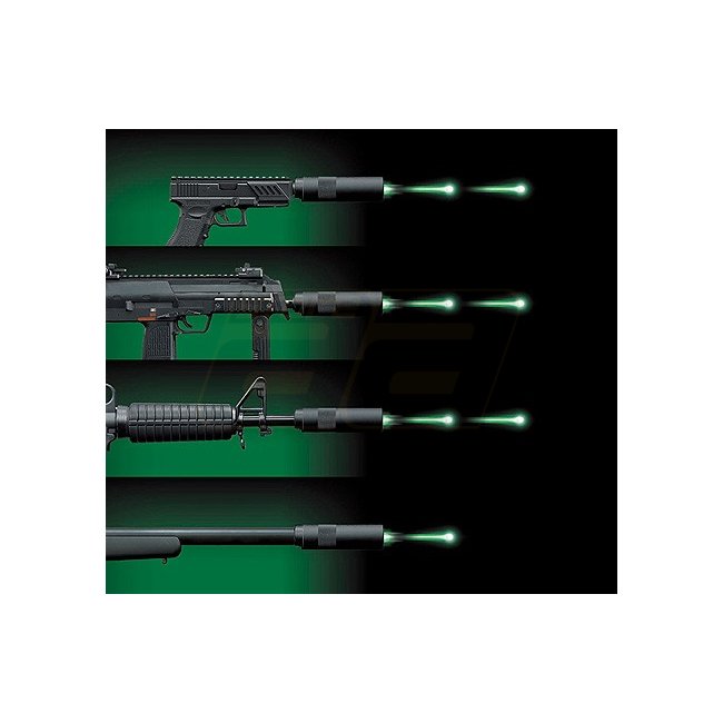 Corps en métal, filetage 14 mm- / CCW, bouton On/Off, comprend 100 billes Tracer, alimenté par 4 piles AAA, Dimensions : 133x37mm. Billes Tracer requises.