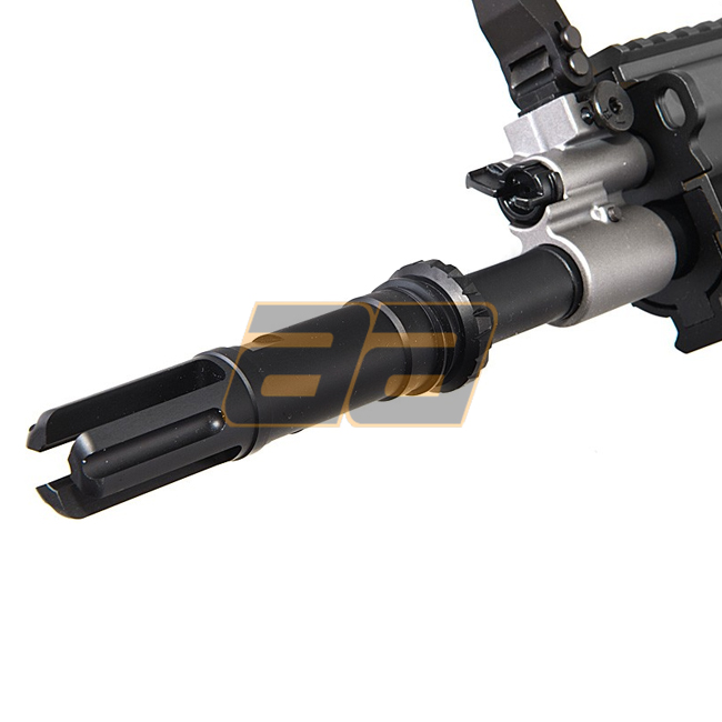 • Canon externe, Flashhider, rails et body en métal • S'arrête de tirer lorsque le chargeur est vide (seulement avec le chargeur 90 BBs) • Canon externe amovible qui convertit la longueur Standard à CQC