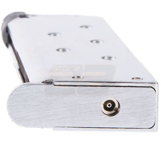 Améliorez votre Marui V10 avec ce chargeur à gaz ultra compact de 22 coups de couleur argentée élégante.