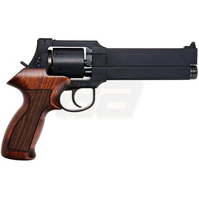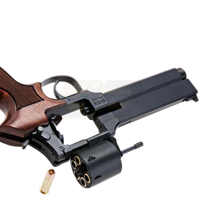 Revolver à Gaz Marushin Mateba 6 Pouces Version Avec Poignée en Bois - Noir. Matériau en plastique, capacité du chargeur de 6 mm, longueur de 300 mm, poids de 1020 g, longueur du canon interne de 115 mm, vitesse initiale de 280-300 FPS. Mode de tir semi-a