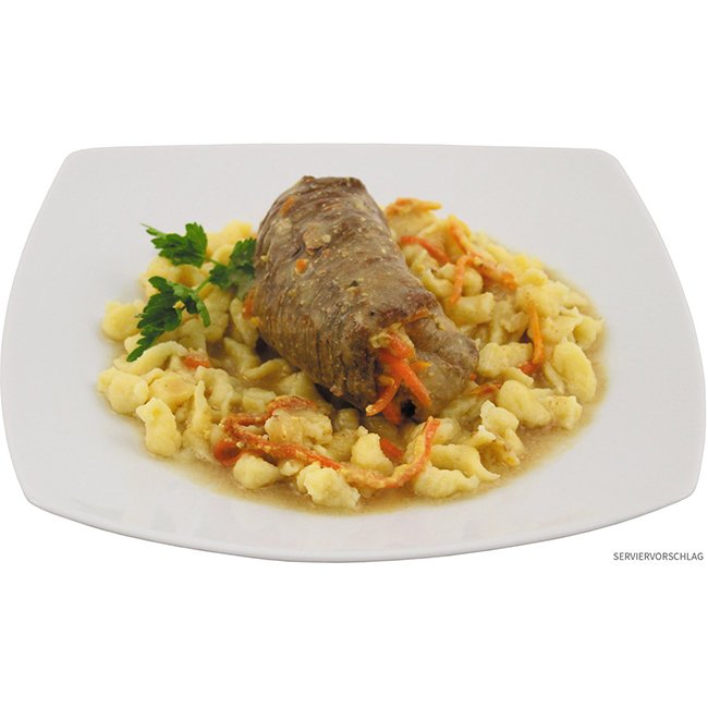 Des ingrédients indigène Artisanalement fabriqué à Allemagne Sans agent de conservation et exhausteurs de goût Sans aucun traitement de viande séparée Non refroidi 10 ans conservable !!! Stocker au sec et température ambiante Ingrédients : 45% buf, 17,5% farce (lard, oignon, cornichons, carottes) eau potable, crème, lait, farine de froment, farine de pommes de terre, vinaigre, poivre, sel , épices, 37,5 % pâtes consistantes, spécialités du pays souabe (farine de froment eau potable,10% uf, sel de table, huile de colza, acidifiant acide citrique, condiment) Indication de pourcentage au moment de l'utilisation