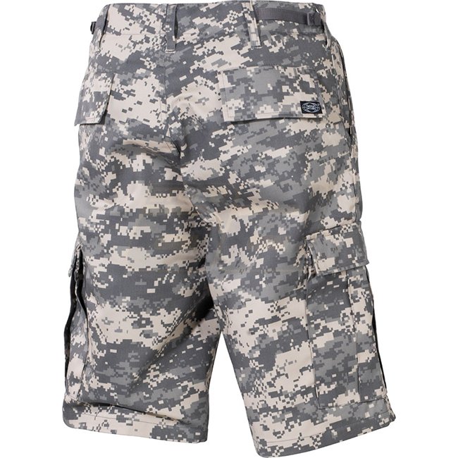 Shorts Bermuda MFH BW avec Poches Latérales en impression numérique AT, taille XL. Fermeture éclair à l'avant, 6 poches, ceinture ajustable et passants de ceinture larges. Matériau : 65 % Polyester, 35 % Coton.