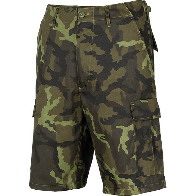 MFH BW Bermuda Shorts avec poches latérales en M95 CZ Camo, taille L. Design polyvalent avec fermeture éclair avant, 2 poches de pantalon, 2 poches à la hanche avec rabat et boutons, 2 poches de jambe avec rabat et boutons, taille réglable et passants de