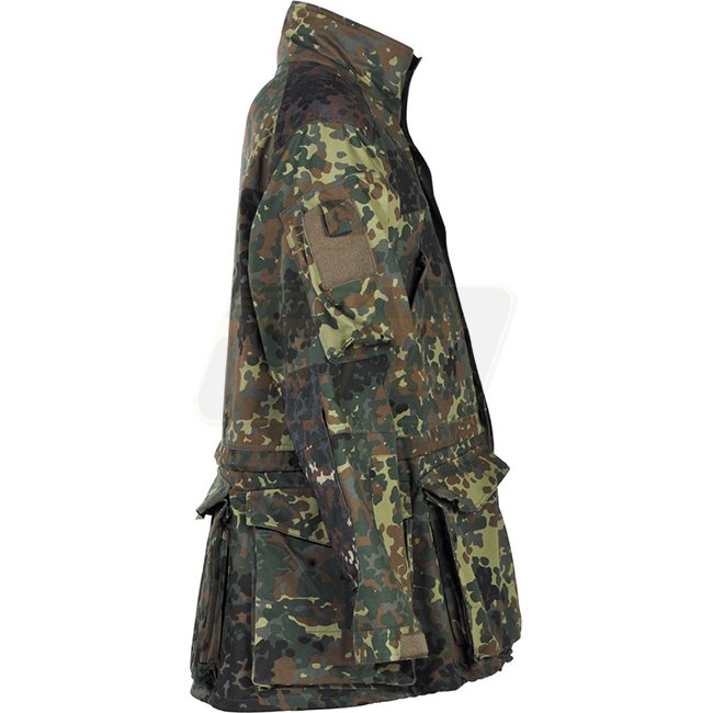 Veste de combat longue MFH BW Mission / Exercice en Flecktarn, taille XL. Comprend un col montant, une fermeture éclair frontale dissimulée à 2 voies, plusieurs poches, des extrémités de manches réglables, des coudes et des épaules renforcés, des panneaux
