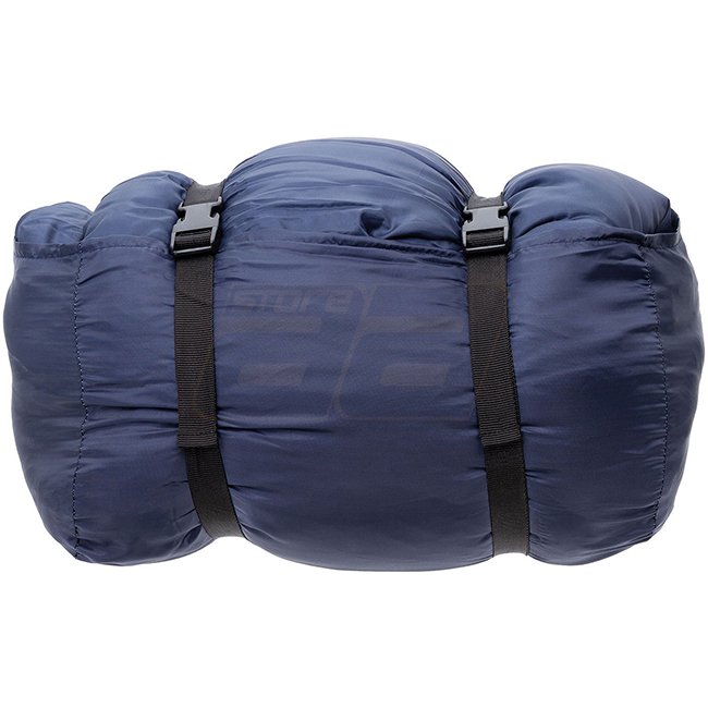 Sac de couchage pilote de haute qualité en couleur bleue, parfait pour des températures allant de -10°C à +15°C. Il présente un rembourrage à 2 couches et peut être combiné avec un deuxième sac de couchage. Se transforme facilement en couverture grâce à u