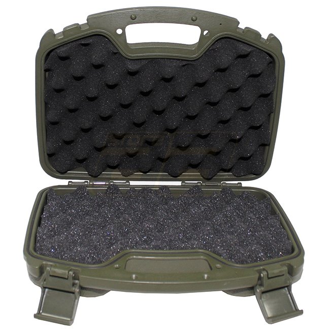 Protégez vos grands pistolets dans cette mallette en plastique verrouillable de couleur olive. Antichoc, résistant aux éclaboussures avec un insert en mousse d'œuf. Fermetures à pression, poignée, œillets de verrouillage, couvercle avec joint en caoutchou
