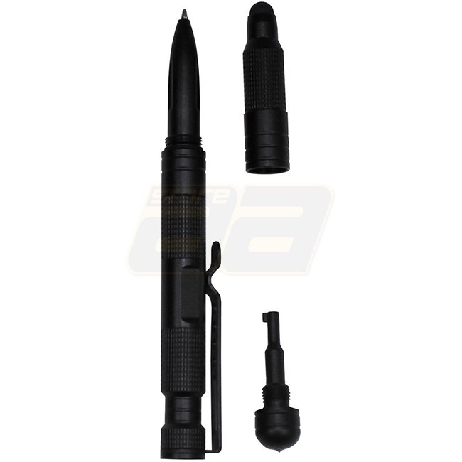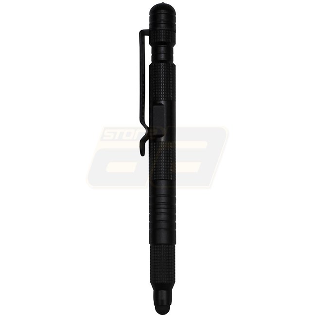 Stylo MFH Tactical-Pro de couleur noire - Stylo stable avec clip de ceinture, fonction de stylo tactile, briseur de verre, clé de menottes. Longueur : 16 cm, Poids : environ 53 g