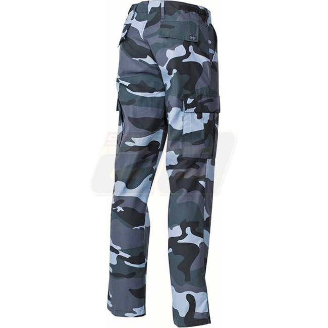 Pantalon de combat US MFH en bleu ciel - taille L, inspiré des pantalons classiques de l'armée américaine. Fermeture éclair à l'avant, 6 poches spacieuses, taille ajustable et cordon de serrage à l'ourlet pour un ajustement parfait. Mélange durable de 65