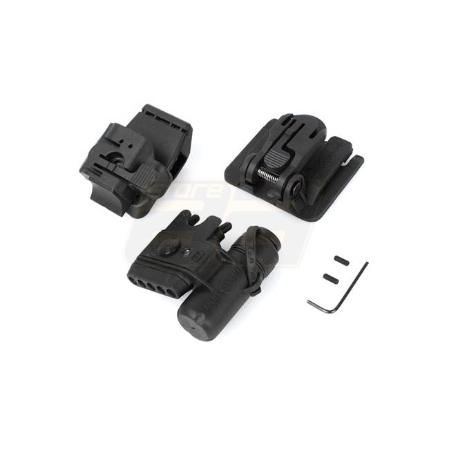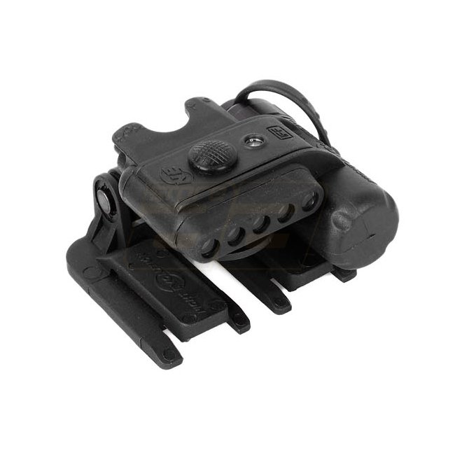 Ensemble de lumières de casque Night Evolution Gen.3 - Noir : Corps en polymère avec LEDs blancs, bleu/rouge et IR. Interrupteurs séparés pour les LEDs et le réglage de la luminosité. Alimenté par une batterie CR123A. Comprend le casque et les supports MO