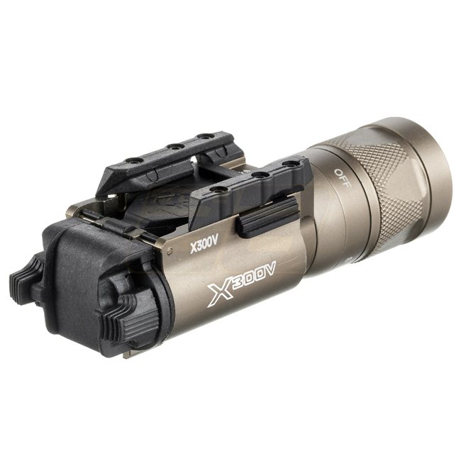 Lampe de poche tactique à stroboscope LED Night Evolution X300V Vampire - Terre sombre - Fonctionnalité stroboscopique, piles CR123, ambidextre, rails de 20 mm/Picatinny.