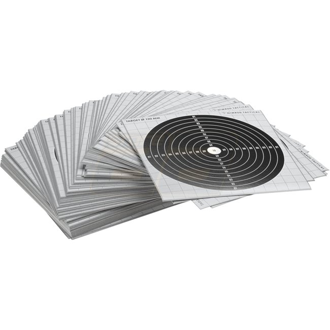 Cible de tir Nimrod 14x14 cm 100pcs - Idéal pour améliorer vos compétences de tir. Paquet de 100 cibles durables mesurant 14x14 cm chacune.